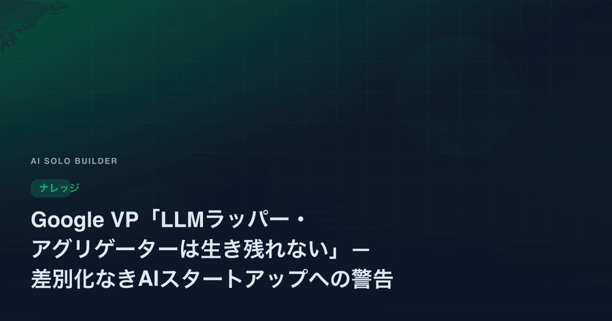 Google VP「LLMラッパー・アグリゲーターは生き残れない」— 差別化なきAIスタートアップへの警告
