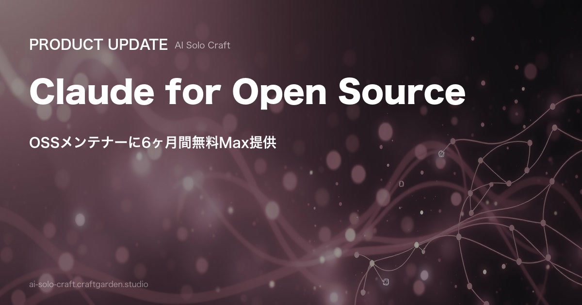 Anthropicが「Claude for Open Source Program」を正式ローンチ。GitHub Stars 5,000+またはDL数100万+のOSSメンテナーに、月額200ドルのClaude Max 20xを6ヶ月無料で提供する。