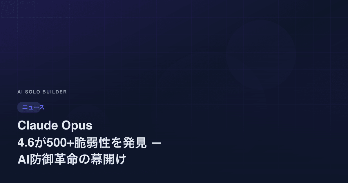 Anthropic Claude Opus 4.6が専用ツールなしで500以上の未知高深刻度脆弱性を発見。人間の研究者レベルの推論力で、個人開発者の防御力を大企業レベルまで引き上げ。