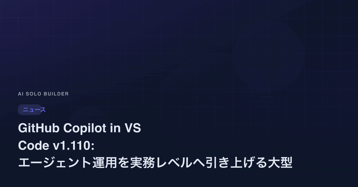 AI駆動のユニットテスト生成機能がVisual Studio 2026で一般利用可能に。コードからテスト実行まで統合されたワークフローで、.NETソロ開発者のテスト作成時間を大幅短縮。
