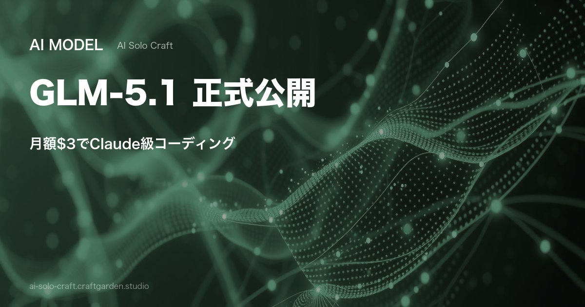GLM-5.1正式公開 — 月額$3でClaude Opus級のコーディング性能を実現