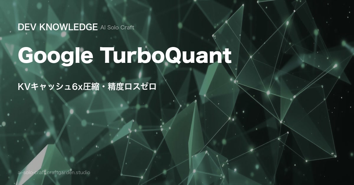 Google Researchが発表したTurboQuantは、LLMのKey-Valueキャッシュを精度劣化なしで6分の1に圧縮する。ICLR 2026で発表予定の論文の実装がすでにOSSコミュニティで動き出している。