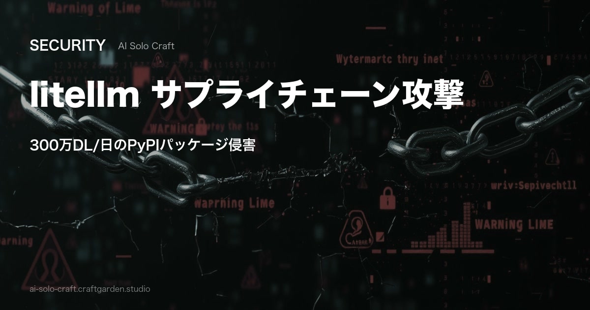 litellm PyPIサプライチェーン攻撃 — 300万DL/日のAIパッケージが侵害、全バージョン隔離