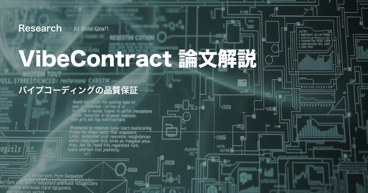 arXiv論文「VibeContract」を解説。LLMによるコード生成に開発者検証可能な契約(Contract)を組み込み、バイブコーディングの品質を担保するアプローチ。